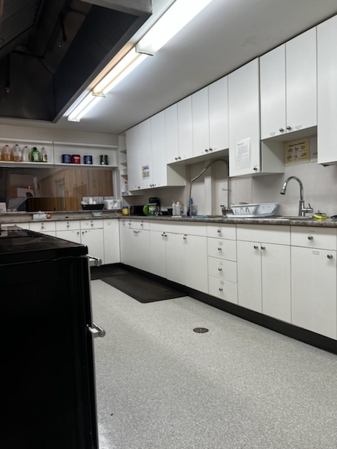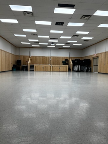 The hall has an occupancy of XX people, measuring approximately XX square feet and is a licensed facility with an attached kitchen for food prep and serving.